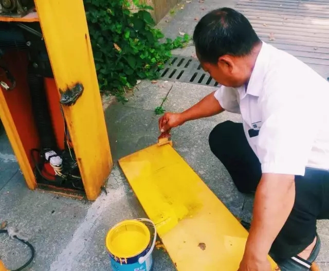 而园区户外的公共设施设备,在日晒雨淋下容易锈蚀腐烂,为延长它们的使用寿命,同时让外观更加美观,园区工程人员定期对车库护栏、闸阀井盖等设备进行刷漆养护。